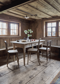 In der Küche zeugt die rauchgeschwärzte Stotzwand (Rückwand) von der ehemaligen offenen Feuerstelle. Die stark ausgetretene Türschwelle weist auf die Nutzung von genageltem Schuhwerk hin, das bei der ländlichen Bevölkerung gebräuchlich war. Als prägendes neues Element fällt die Arbeitsfläche der Küche und der Abwaschtrog aus weissem Serenastga-Marmor auf, einem seltenen und hochwertigen Marmor aus dem gegenüberliegenden Serenastga-Tal, das vom Küchenfenster aus zu sehen ist.