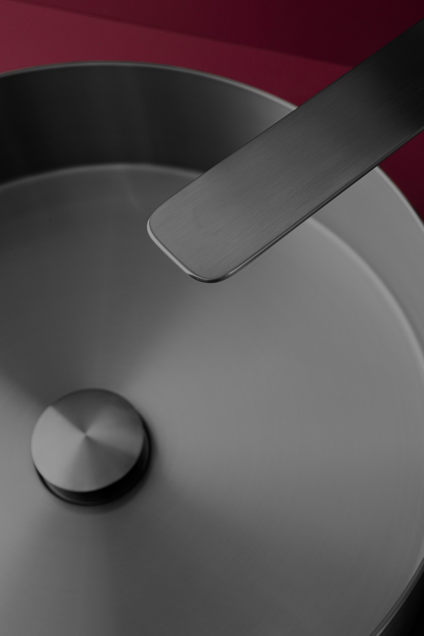 Bevo überzeugt mit schlanker Silhouette, elegantem Auslauf und präzise gestaltetem Hebel. In Brushed graphite wirkt sie zurückhaltend und architektonisch, beinahe technisch kühl – ideal für puristische Bäder oder in Kombination mit Stein und Beton. Brushed gold verleiht derselben Form eine warme, kultivierte Präsenz, ohne dekorativ zu wirken. Das Gold bleibt bewusst matt und ruhig. Brushed copper bringt eine erdige, sinnliche Note ins Bad, mit feinem industriellem Unterton.